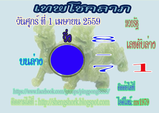 หวยรัฐวันศุกร์ ที่ 1 เมษายน 2559